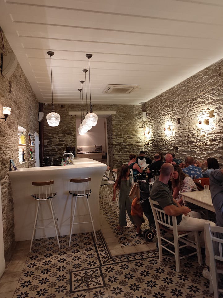 Σαλάτα Ενδοχώρα (ανάμεικτη σαλάτα με σταφίδες, κουκουνάρια, καρύδια, σύκα, σουσάμι, παστέλι και βινεκρέτ με μηλόξυδο) και Καπέλι (φρέσκα ζυμαρικά γεμισμένα με διάφορα τυριά σερβισμένο με κρέμα από βολάκι)