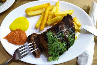 Σερβίρει γεμιστό "μπιφτέκι" φτιαγμένο από σνίτσελ (κι όχι κιμά) γεμισμένο με κασέρι & μανιτάρια, με επικάλυψη λιωμένου μπλε τυριού. Ένα αλλιώτικο…